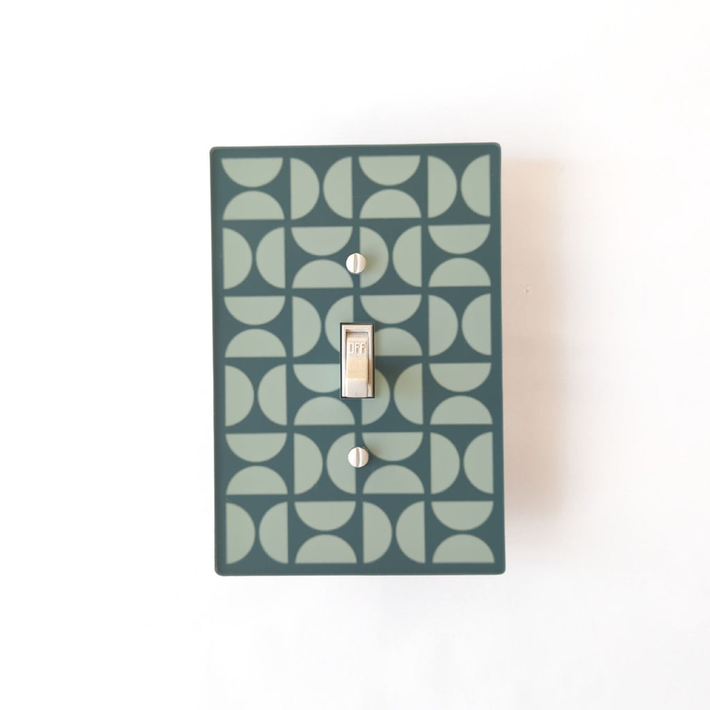 Bring bold mid-century style to your walls with this Bauhaus-inspired switch plate cover. The repeating semicircle pattern adds playful geometry and a pop of modern color to any room. Perfect for those who love retro design, minimal lines, and timeless modern decor.