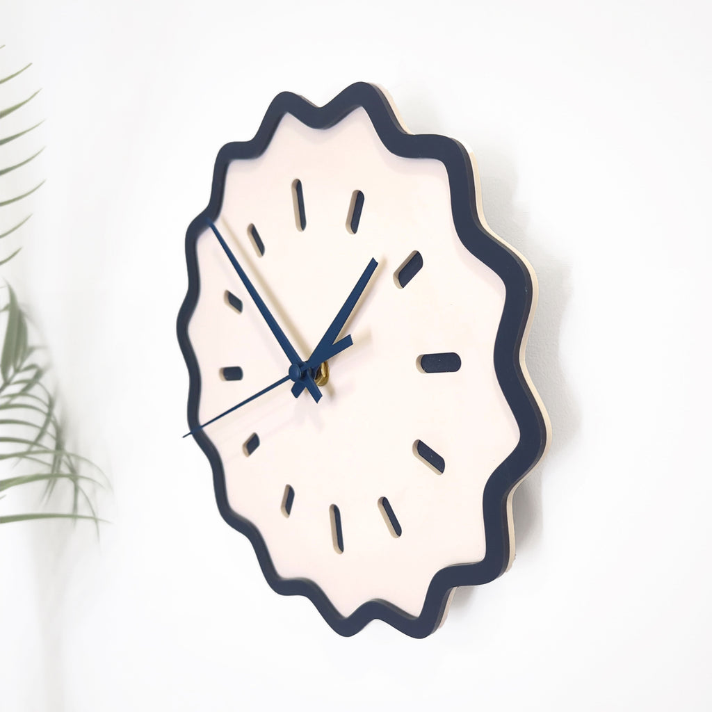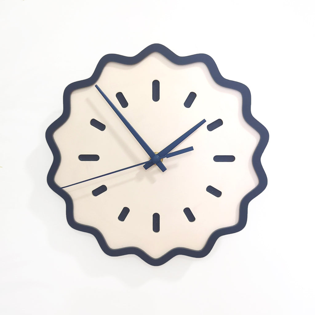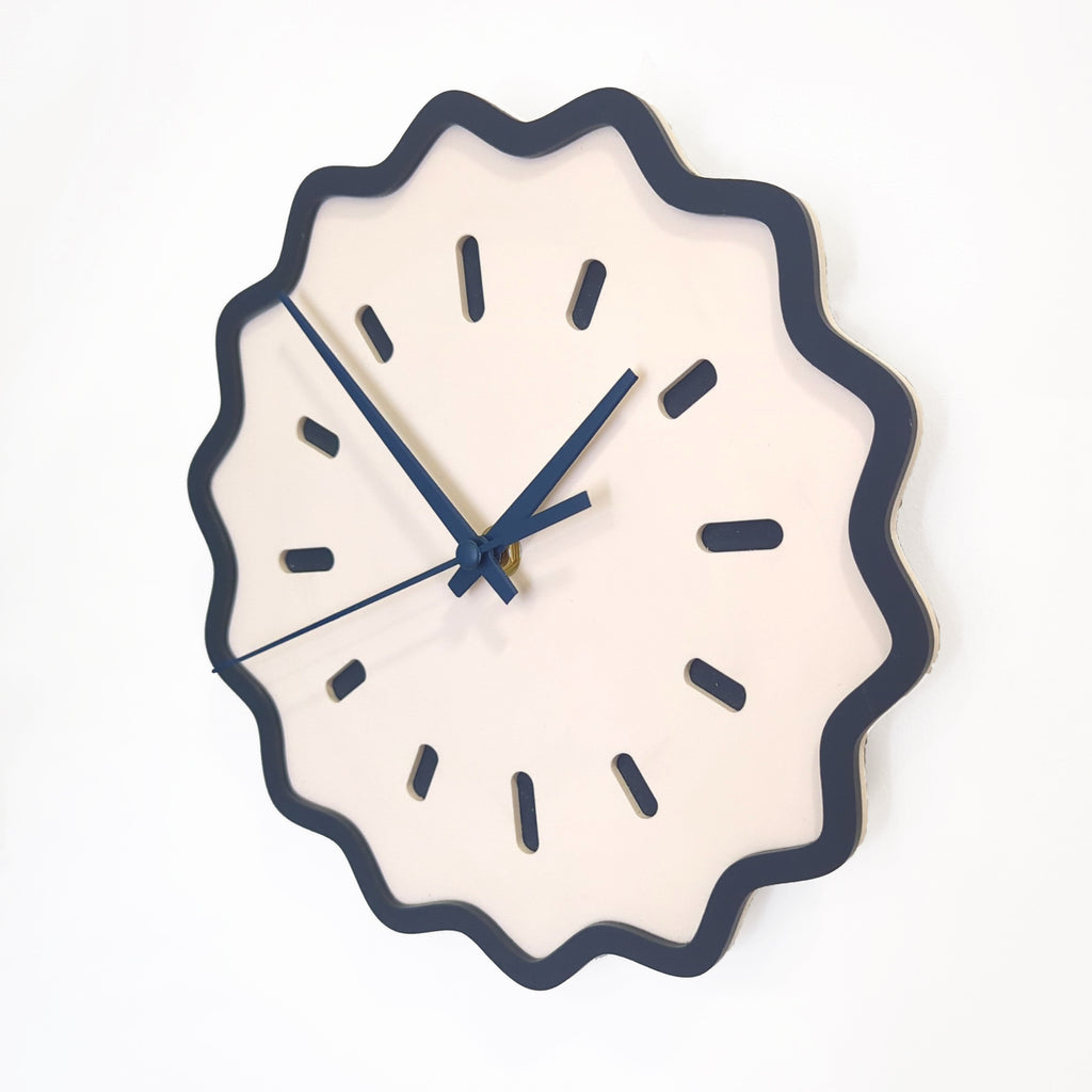 Fluted Geometric Acrylic Wall Clock - Midnight Blue and Bone