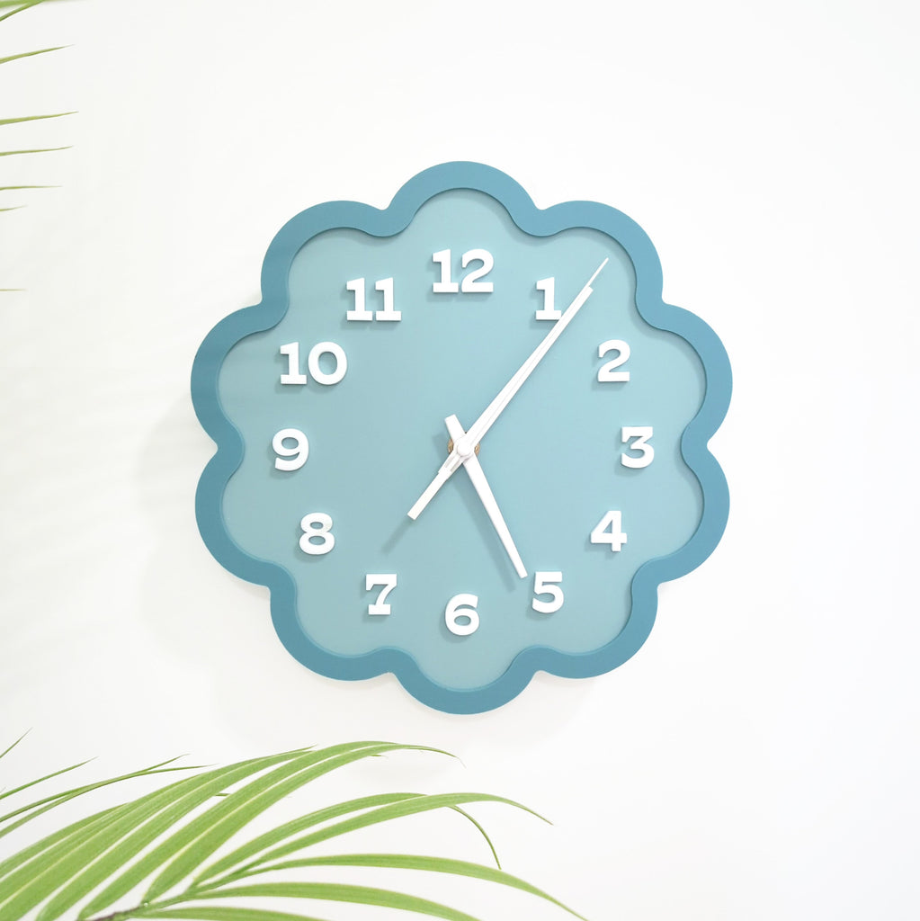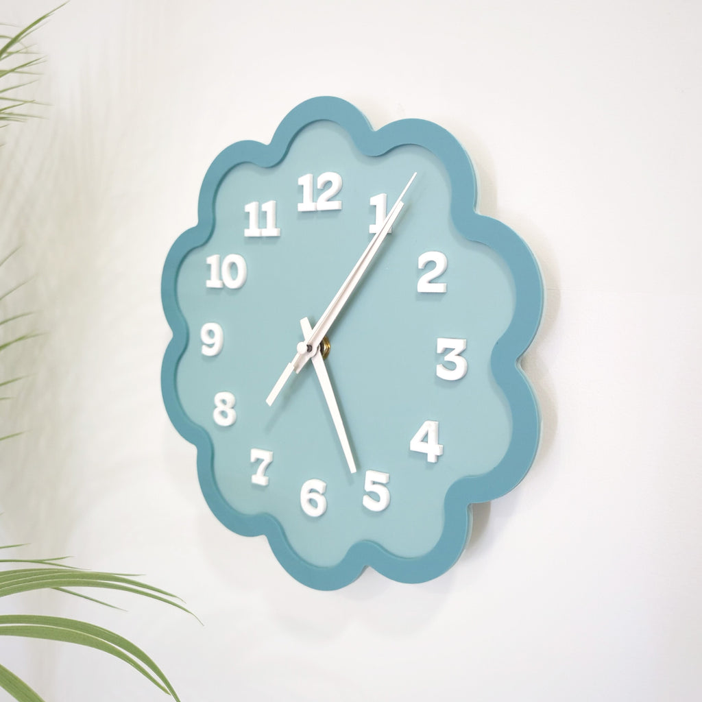 Framed Flower Layered Acrylic Wall Clock - Dusty Blues